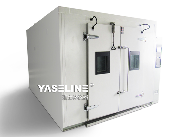 恒溫恒濕實驗室室體(試驗室主體(殼體))分為六個室體面及一扇雙開式室體大門,尺寸為1800×2000 mm,室體材料為內(nèi)膽優(yōu)質(zhì)不銹鋼板(防止長時間在濕度運行狀態(tài)下內(nèi)壁生銹),外膽為優(yōu)質(zhì)彩鋼板(國內(nèi)名牌),保溫介質(zhì)為聚氨脂硬質(zhì)發(fā)泡隔熱,質(zhì)輕耐抗擊,隔熱性能佳,大門材料同樣為彩鋼板制成,大門拉手為內(nèi)外開啟式,以便于試驗人員從封閉的室內(nèi)自由開啟大門。