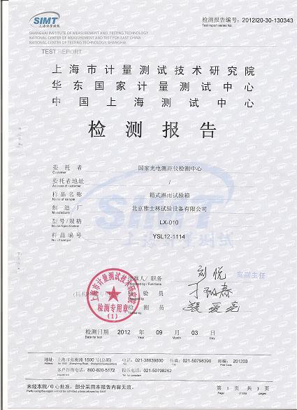 >>淋雨試驗箱檢測報告-上海計量院-國家光電中心