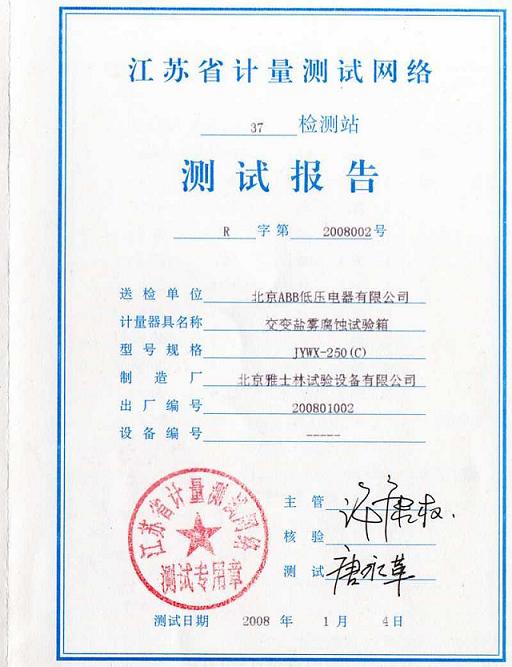 >>鹽霧腐蝕試驗(yàn)箱測試報(bào)告-江蘇計(jì)量院-ABB集團(tuán)