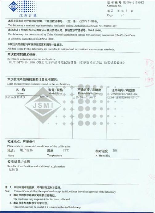 >>鹽霧腐蝕試驗箱校準證書-江蘇計量院-廣西計量院