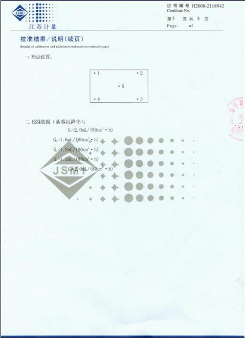 鹽霧腐蝕試驗箱校準證書-江蘇計量院-廣西計量院