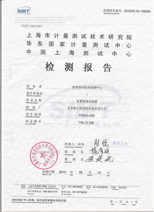 >>鹽霧腐蝕試驗(yàn)箱檢測報(bào)告-上海計(jì)量院-勝利油田