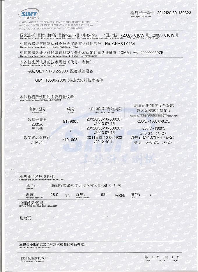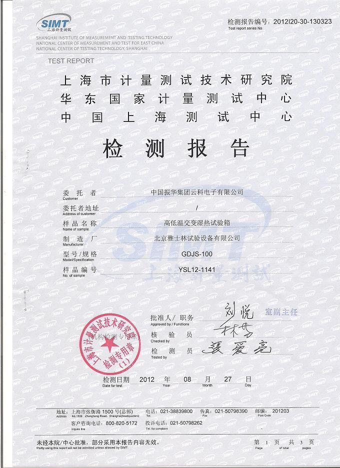 ·高低溫交變濕熱試驗(yàn)箱檢測(cè)報(bào)告-上海計(jì)量院-振華集團(tuán)
