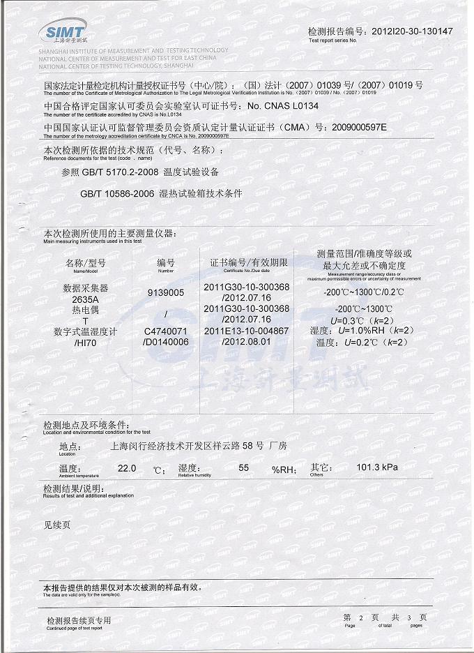 >>高低溫交變濕熱試驗(yàn)箱檢測報(bào)告-上海計(jì)量院-首都航天