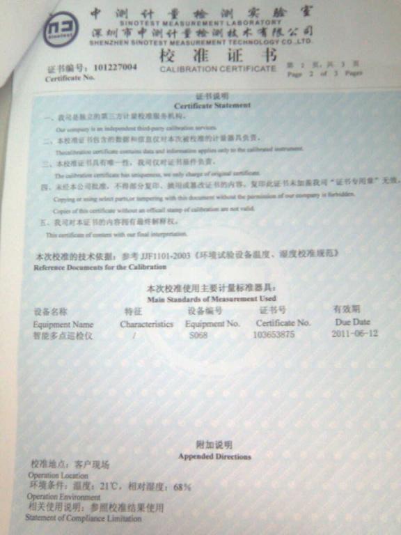 高低溫交變濕熱試驗箱校準證書-深圳中測計量-深圳精銳通