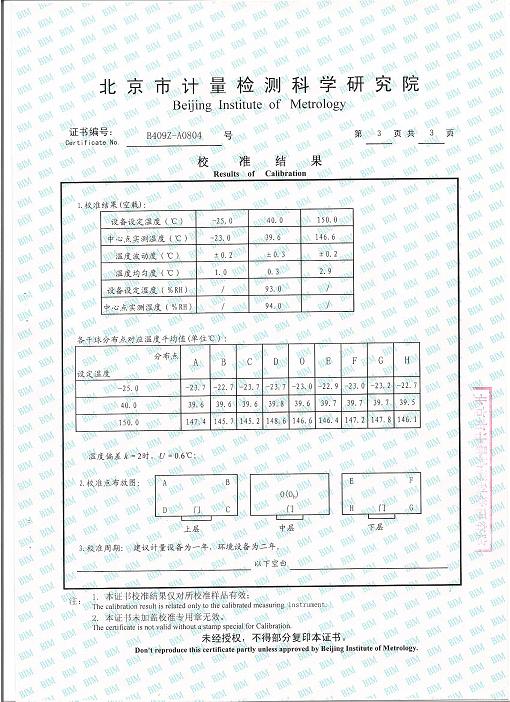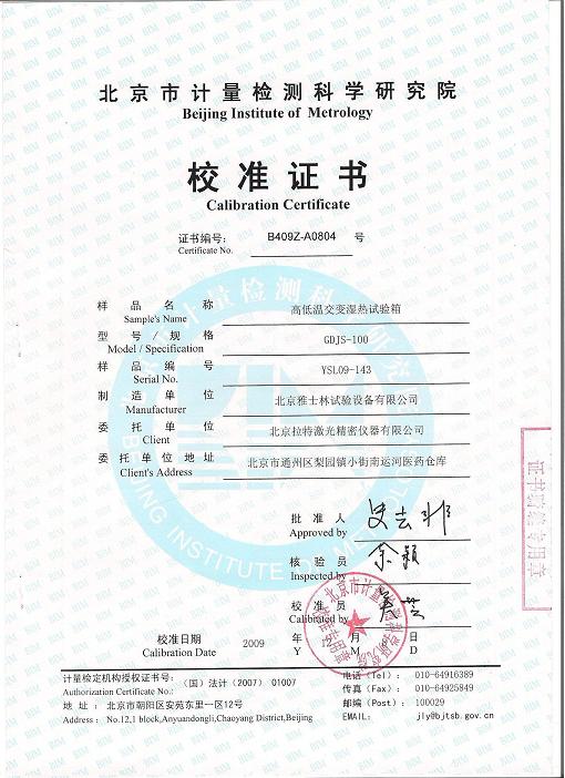 高低溫交變濕熱試驗(yàn)箱校準(zhǔn)證書-北京計(jì)量院-拉特激光