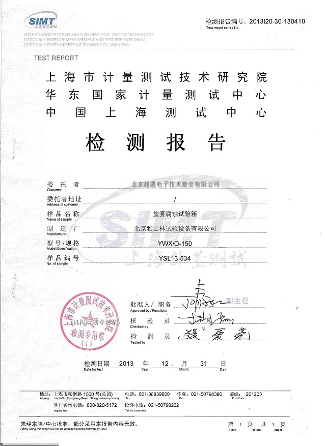 鹽霧腐蝕試驗箱檢測報告模板下載--上海計量院